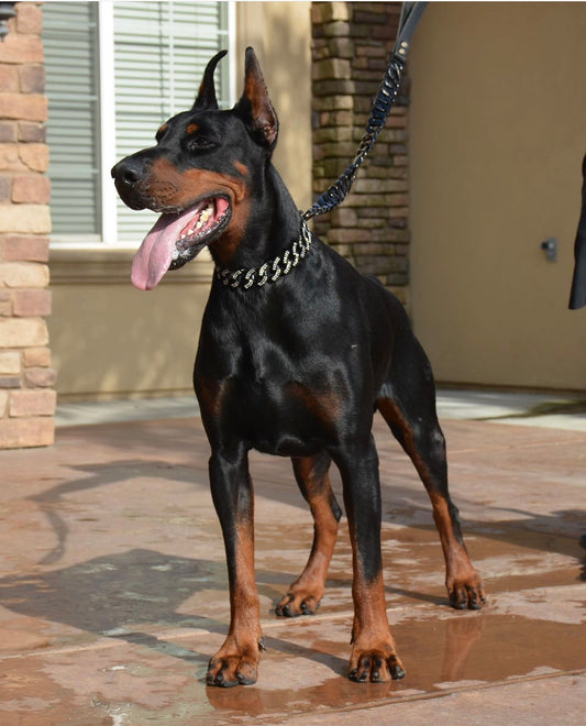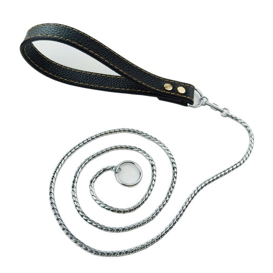 120cm Dog Chain Collar Leash 304 Stainless Steel Dog Metal Collar Choke Silver, Black, Rose, Gold Pet Lead Rope With Leather Handle