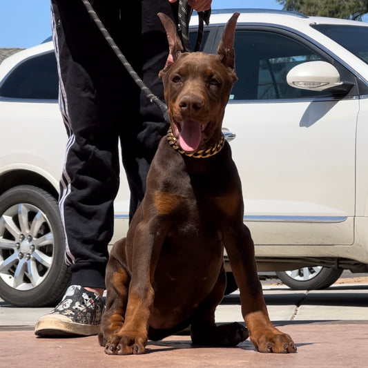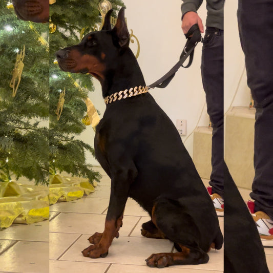 4.5FT Luxury Stainless Steel Chain 18K Gold Pet Leash with Leather Handle